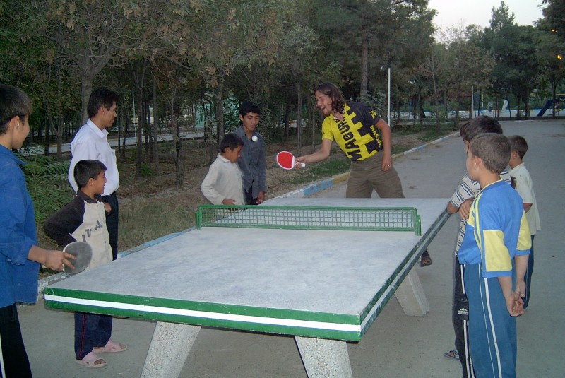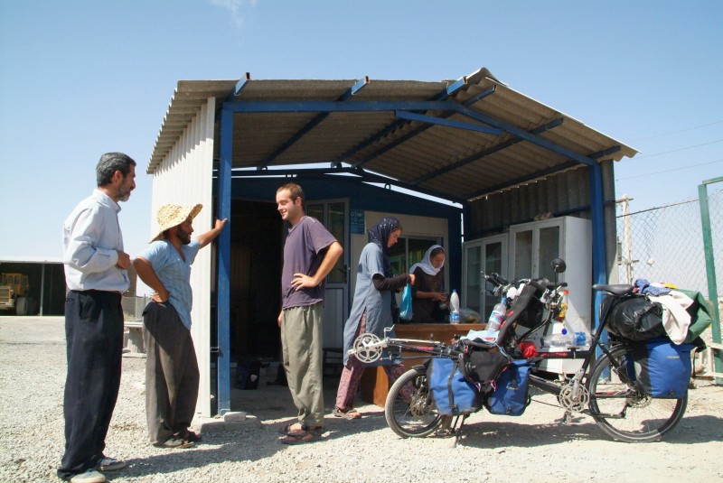 Aber was für eine Wahl haben wir schon? 7 Tage in Teheran wollen wir auf jeden Fall nicht mehr bleiben. Am Vorabend haben wir noch eine Einladung von anderen netten und gastfreundlichen Bekannten aus Teheran. Leider hat Benny wohl vorher etwas falsches gegessen, und so muss er leider am Abend in der Nähe der Toilette bleiben, und wir können die Einladung nicht wahrnehmen, hoffen aber, Sie bei unserem nächsten Besuch in Teheran nachholen zu können, da wir ja definitiv nochmal zurück kommen müssen um unsere Pässe abzuholen. Und so fahren wir einfach aus Teheran raus und hoffen im Falle einer Kontrolle mit unseren Passkopien den Sachverhalt irgendwie erklären zu können. Nach 60 Kilometern treffen wir dann Theo und Laura in einem Park, da die beiden schon früh morgens aus Teheran raus gefahren sind. Zunächst haben wir noch nette Gespräche untereinander. Mandy zeigt einigen Kindern unser Tandem, Benny wird zum Tischtennis eingeladen. Wir bauen unsere Zelte auf, essen zu Abend und es ist mittlerweile Nacht, aber so langsam ist uns der Platz nicht mehr wirklich geheuer, da einige komische Gestalten herumschleichen. Wir sind sehr dankbar, auf die Einladung der benachbarten Baufirma zurückzukommen, die uns angeboten haben, bei Ihnen zu übernachten. Bis spät in die Nacht sitzen wir noch unter wunderbarem Sternenhimmel vor der Hütte.