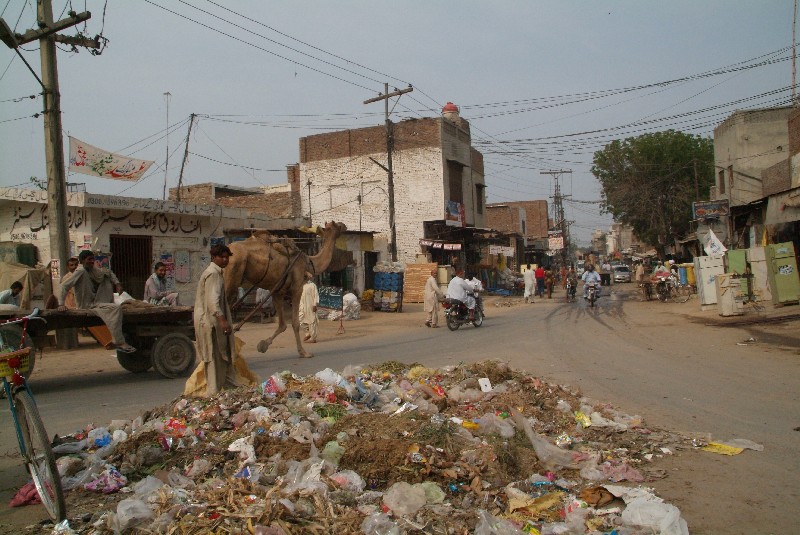 Doch endlich ist es dann soweit: Wir sitzen wieder auf dem Rad und fahren aus Multan raus. Unangenehm ist zwar der Lärm und Dreck der zahllosen anderen "Verkehrsteilnehmer" in Form von Fahrrädern, stinkenden Rikschahs, knatternden Mopeds, Ochsen-, Pferde- oder Eselkarren, in dauerhupenden Bussen, Autos und LKW. Jedoch lässt es sich - abgesehen vom Lärm und Dreck - durch den insgesamt langsameren Verkehrsfluss für uns angenehmer fahren als beispielsweise im Iran, wo es in den Städten quasi nur rasende Autos gibt. Und je mehr wir uns von der Stadt entfernen, desto besser radelt es sich. Hier sind angenehmerweise auch unzählige Straßenstände an denen wir Rast machen können. Und nicht nur neben der Straße ist einiges los, auch die Straße selbst scheint zu leben. Einheimische Radfahrer bummeln meist im Schneckentempo vor sich hin, bis Sie diese merkwürdigen Ausländer auf diesem sonderbaren Gefährt an sich vorbeifahren sehen, uns Sie dann natürlich Gas geben, um zu dieser merkwürdigen Erscheinung auf 2 Rädern aufzuschliessen. Dieses unerklärliche Phänomen wollen sie sich dann verständlicherweise so lange wie möglich anzuschauen.