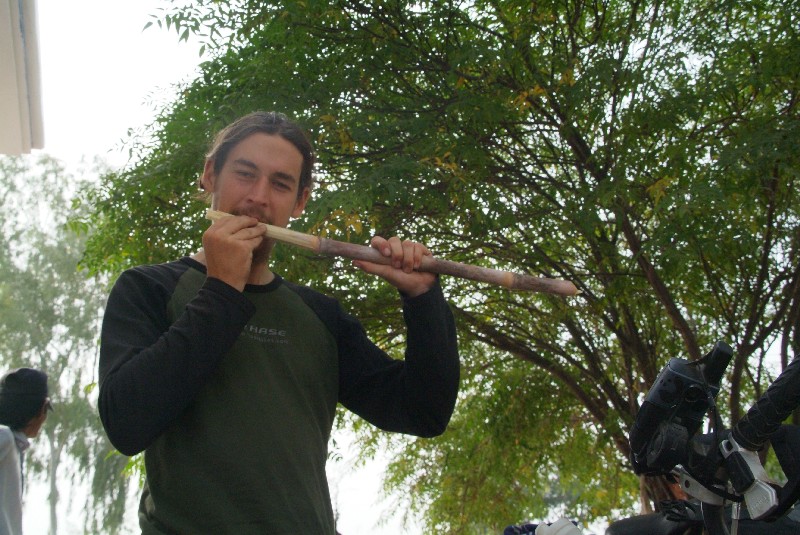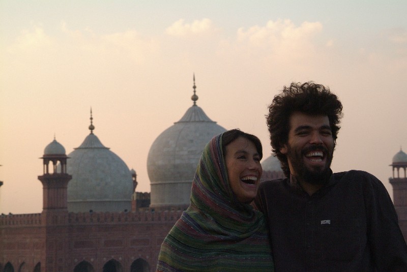 Nach ziemlichen Bummeltempo der letzten Tage erreichen wir dann Lahore und landen wieder in einem der Hostels, wo sich Reisende aus der ganzen Welt treffen. Abwechselnd hüten wir das Krankenbett einen Tag lang, entspannen uns, besichtigen die schöne Moschee der im Smog versinkenden Stadt oder reparieren kleinere Dinge am Fahrrad. Einen Abend ist Land unter in der Stadt, alles versinkt im Wasser und den Morgen danach liegt eine scheinbar ertrunkene Ratte tot neben unserem Bett. Lahore selbst ist für seine Sufis bekannt - nein, dass sind nicht Alkoholiker, sondern Muslime, die sich mittels Musik in Trance tanzen und deren Musiker dementsprechend hoch verehrt werden. Es gibt auch unzählige Sufischreine, in denen wir zwei dieser Zeremonien beiwohnen dürfen. Tagsüber fällt diese Zeremonie relativ nüchtern aus, wo das Publikum den Musikern ihre Wertschätzung mit Geldscheinen bezeugt, die dann mehrfach über die Musiker geworfen werden. Ein Mann mit einem Kanister auf dem Rücken versprüht Rosenduft. Witzigerweise bekommt besonders Benny, der ihn schon von weitem argwöhnisch beäugt, eine besonders grosse Ladung ab. Während der abendlichen Zeremonie werden Essen, Tee und Joints rumgereicht, um besser in Trance versinken zu können zu dem pulsierenden Takt der unablässig spielenden Trommler.